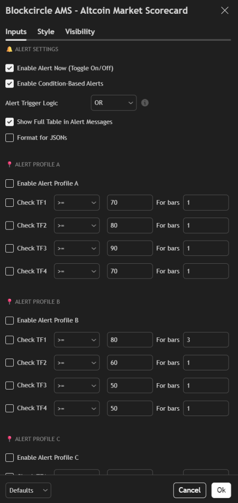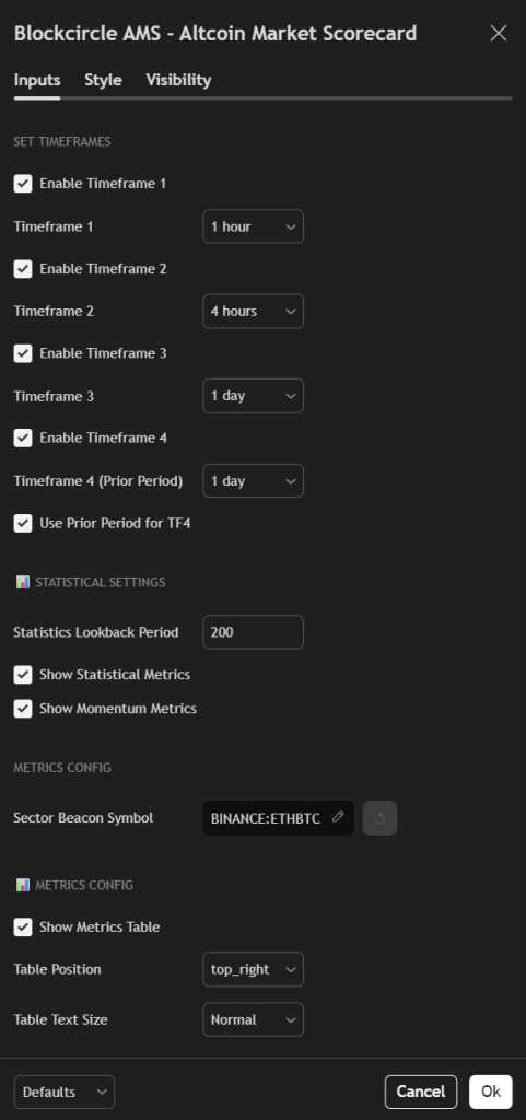 - Blockcircle Integration Visit blockcircle.com/account and enter your TradingView username exactly as registered. The system performs case-sensitive matching – “Blockcircle_Trader1234” will not match “blockcircle_trader1234”. After entering your username, you’ll receive access to the Blockcircle AMS – Altcoin Market Scorecard.