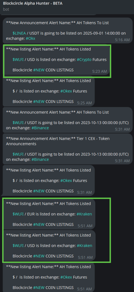 - Alpha Hunter Token Listings: Monitors actual token listings across all centralized exchanges as they happen