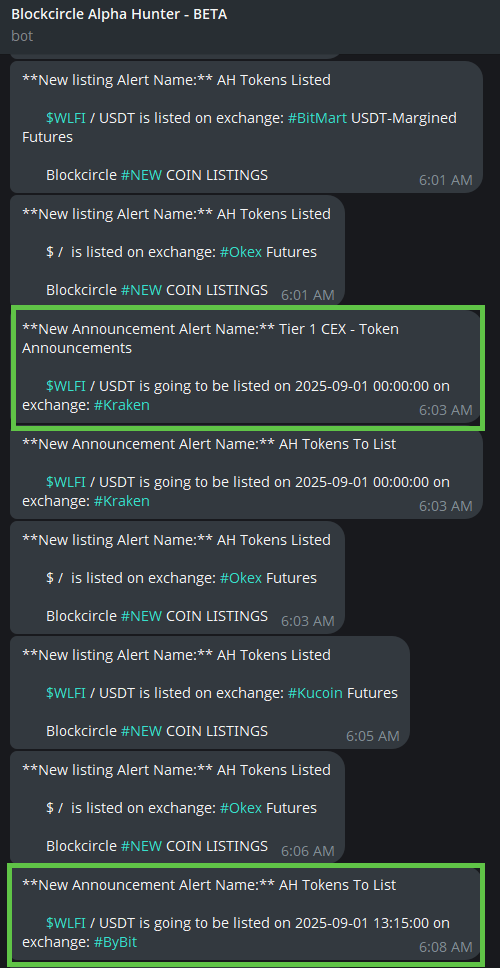 - Alpha Hunter Token Listings: Monitors actual token listings across all centralized exchanges as they happen
