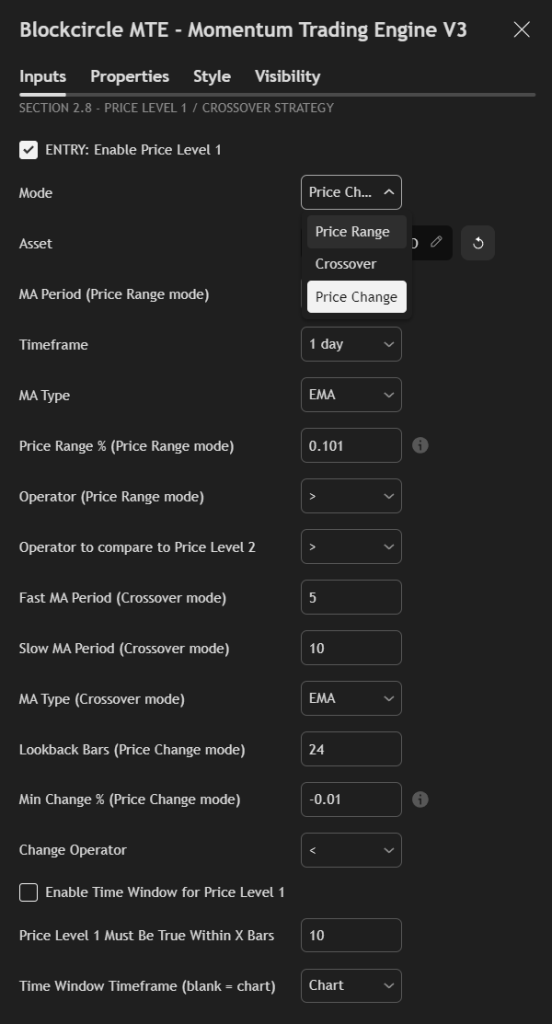 - Disable Price Level Exits: Price levels only enter, doesn’t exit