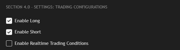 Configuration Name – This field allows you to label your specific strategy setup. Be descriptive and include key parameters. Instead of “X”, use names like “C 19” for CONFIGURATION 19 or “C 21” for CONFIGURATION 21. This helps when managing multiple configurations and comparing performance.