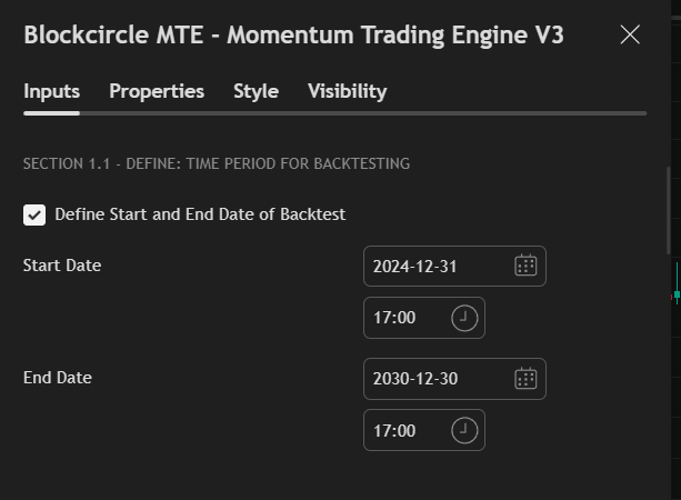 Define Start and End Date – Critical for accurate backtesting. Always enable this to ensure consistent test periods. Without it, the strategy uses all available historical data, which varies by symbol and timeframe.