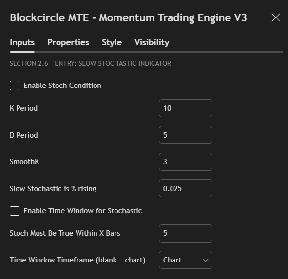 Enable Time Window Allows the AMS condition to be true if it was valid within the past X bars, not just currently. Useful for catching entries after the initial signal.